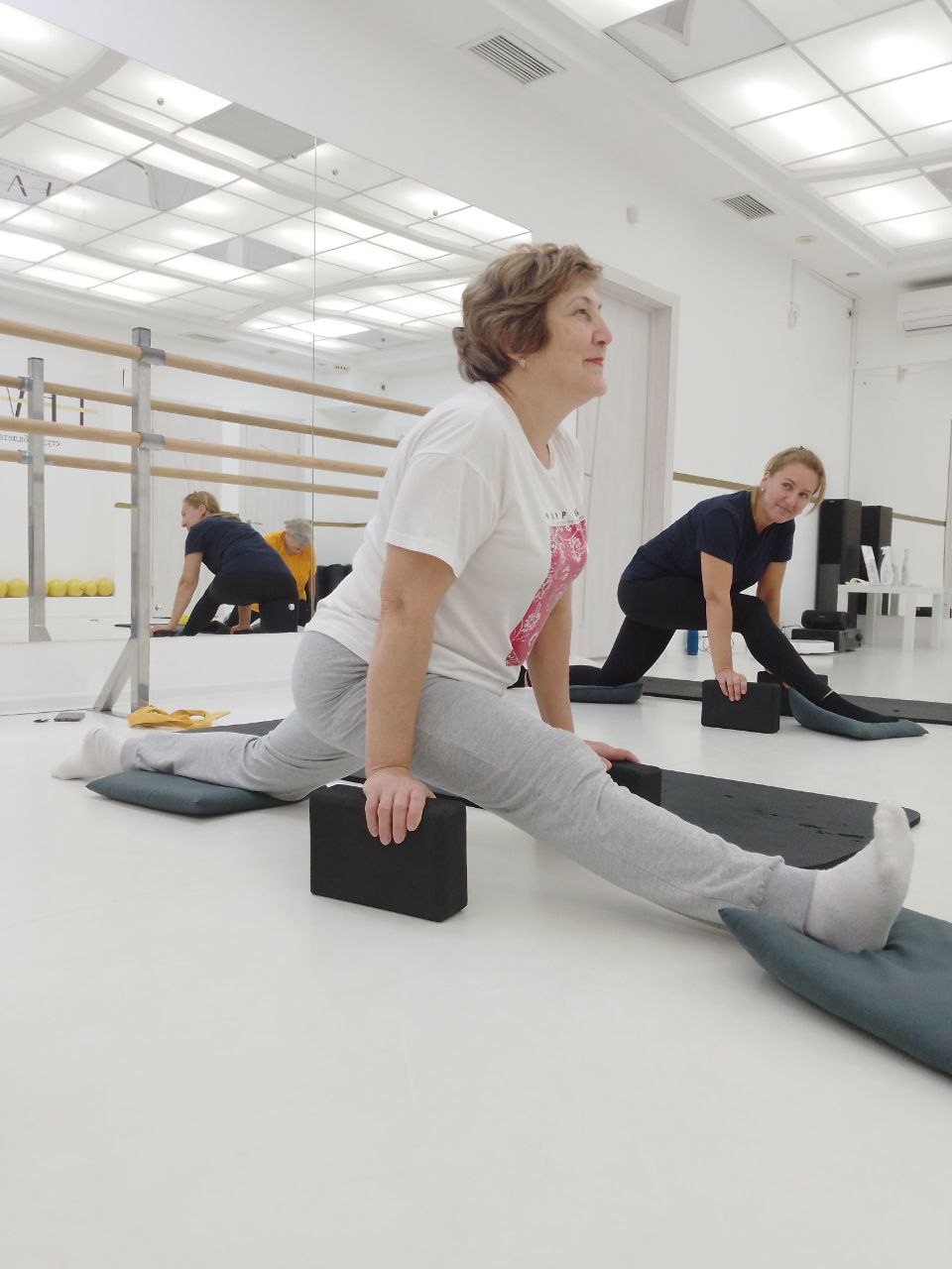 Занятия в студии растяжки, балета и мягкого фитнеса в Петергофе проходят в мини-группах до 6 человек на новых ковриках под руководством профессионального и аттестованного тренера. Который так же дает рекомендации по питанию, учитывая Ваши цели и физиологические особенности.